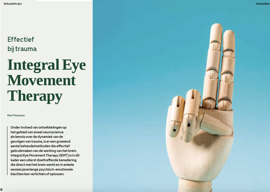 In maart 2023 werd een prachtig artikel over IEMT gepubliceerd in Medisch Dossier “Integral Eye Movement Therapy: effectief bij Trauma”. Medisch Dossier is een kennisplatform over gezondheid. Op hun website en in 9 magazines per jaar bieden ze onafhankelijke en wetenschappelijk onderbouwde informatie over ziekten en behandelingen vanuit reguliere en complementaire zorg.